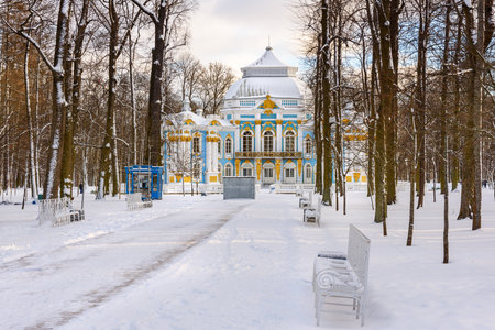 Hermitage pavilion in Catherine park in winter, Tsarskoe Selo (Pushkin), St. Petersburg, Russia