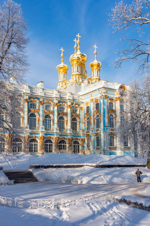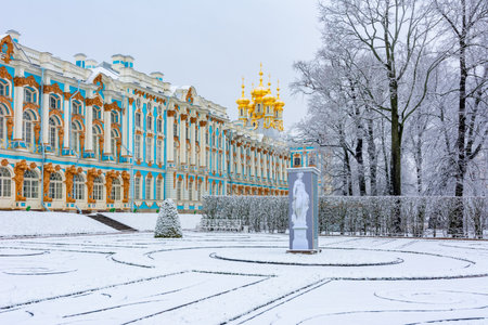 Saint Petersburg, Russia - November 2020: Catherine palace and park in winter, Tsarskoe Selo (Pushkin)