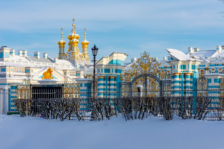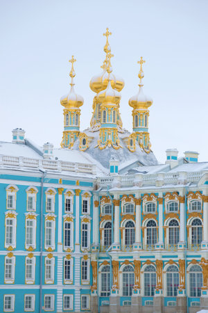 Resurrection church of Catherine palace in winter, Pushkin, Saint Petersburg, Russia