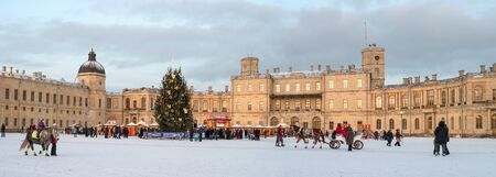 Gatchina, Russia - January 2, 2017: Gatchina Palace, New Years Fair on the parade ground.