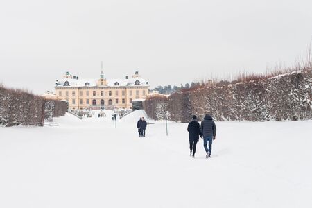 STOCKHOLM, SWEDEN - JANUARY 7, 2017: View over Drottningholm Palace and park on a winter day. Home residence of Swedish royal family. Famous landmark and tourist destination in Stockholm, Sweden