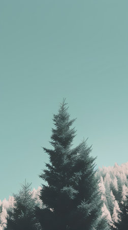 Pine trees on blue sky background. Filtered image processed vintage effect.