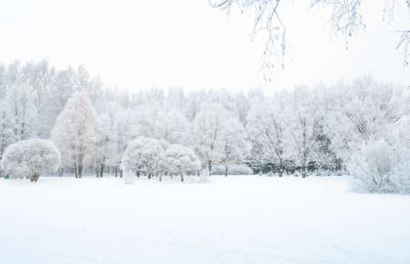Beautiful winter landscape with frosted trees.
