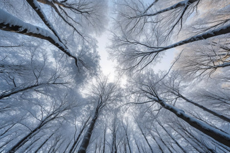 Snow Covered Branches Reaching Into the Sky on a Cold Winter Day