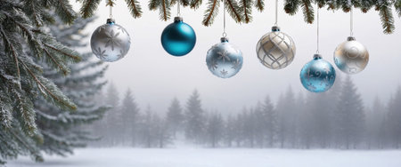 This serene winter background showcases a picturesque scene with snowladen tree branches. It is an ideal choice for Christmas promotions as well as for seasonal designs that invoke festive cheer