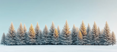 Breathtaking winter scene of snow-covered pine trees against a soft pastel sky. Peaceful and serene nature photography.