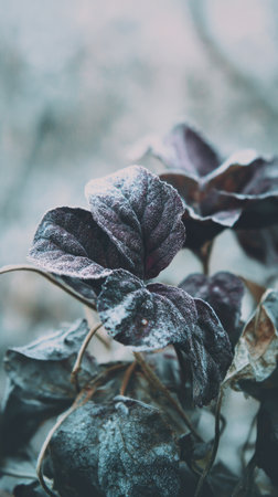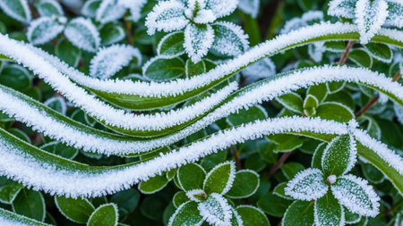 AI Generated. A mesmerizing macro perspective of frozen nature showcasing the delicate beauty of frost covered leaves