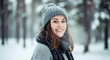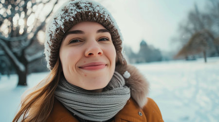 Radiant Young Woman Relishing Winter's Beauty Outdoors