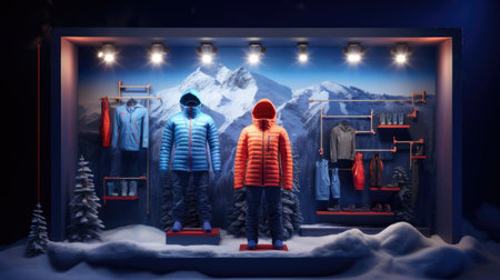 Colorful Outdoor Jackets on Display in a Modern Retail Store Showcasing Winter Gear for Adventurous Activities. Generative AI