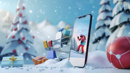 winter sports purchase online, mobile app marketplace and home delivery, mockup screen