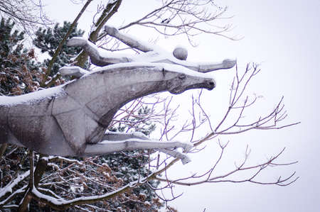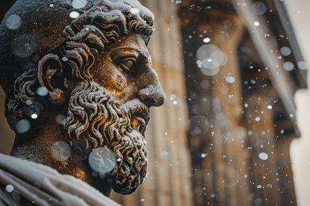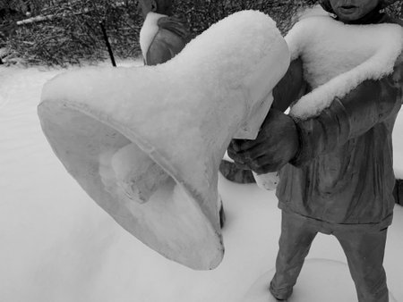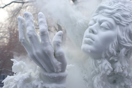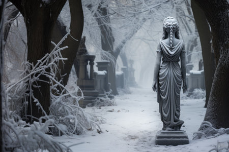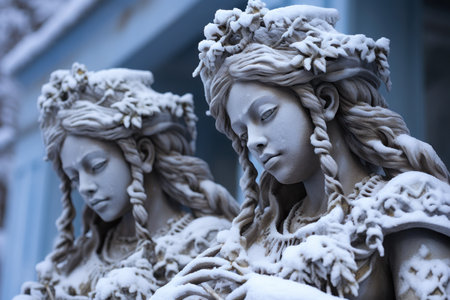 Snow-covered Statues and Monuments: Explore the contrast between historical or artistic structures and the wintery environment. - Generative AI