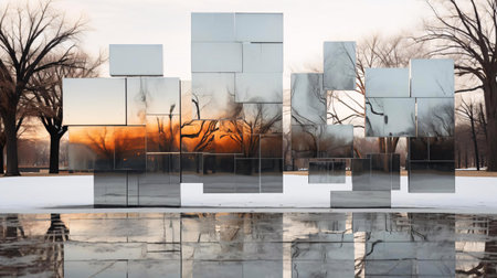 A collection of ice sculptures positioned on top of a ground covered in snow, Ice sculptures sparkling in the midday sun, AI Generated