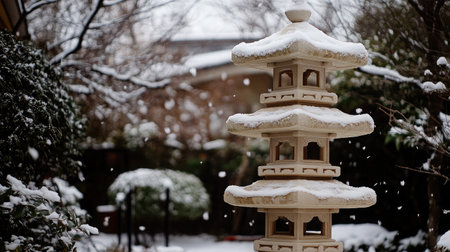 A beautifully sculpted snow pagoda, radiating a serene winter atmosphere.