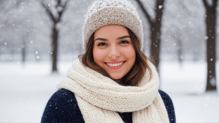 Radiant Young Woman Relishing Winter's Beauty Outdoors