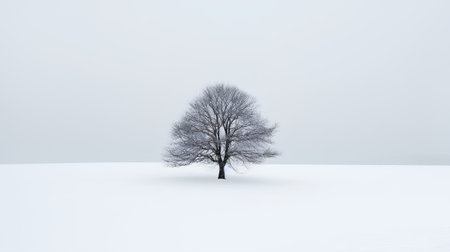 Majestic Winter Landscape A Solitary Tree Stands Resilient Amidst a Snow-Covered Serenity