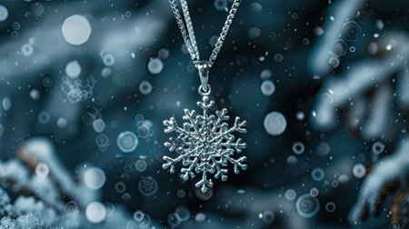 AI Generated. Close-up of an elegant snowflake-shaped brooch amid icy blue tones