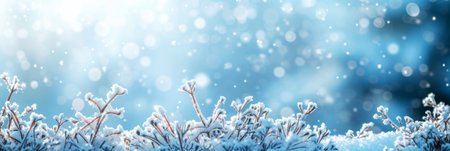 Winter background with snowflakes and bokeh. Panoramic banner.