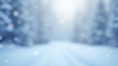 Abstract Winter Scene Blur with Glistening Snow Particles, Soft Glowing Light Flares in Cold Blue Hues, Dreamy Snowfall Atmosphere, Frozen Backdrop with Subtle Sparkle and Shine