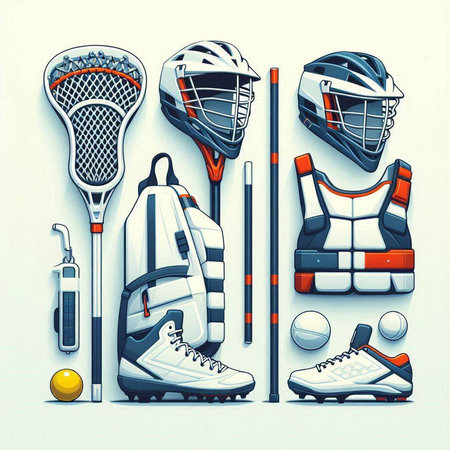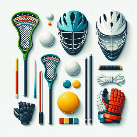 Close-Up Of Lacrosse Equipment On Blue Background. Team sport concept.