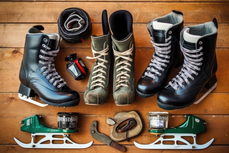 knolling of ice skating tools and equipment photoraphy Generated AI