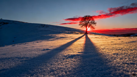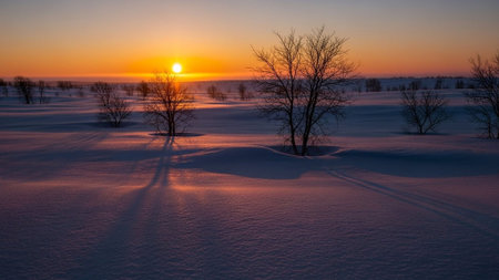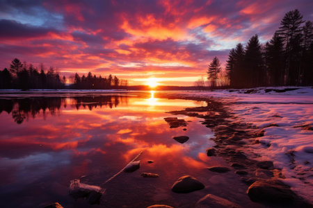 Winter Sunsets and Sunrises: The low angle of the sun in winter can create stunning color palettes in the sky. - Generative AI