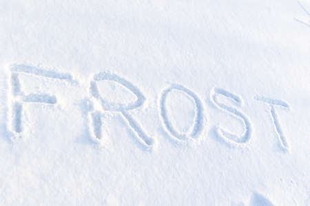 inscription on pure white snow on a frosty winter sunny day. close-up. russia