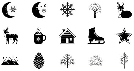 Winter icon set. Vector illustration isolated on white background for graphic and web design.