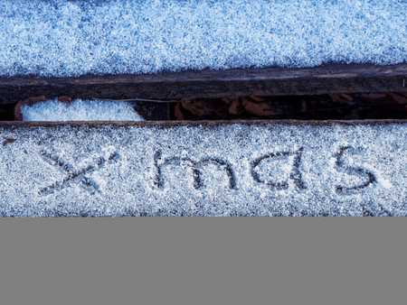 The inscription xmas on the snow. Beautiful stained blue christmas background.