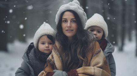 AI Generated. Happy Latin mother enjoying time with her child during winter holidays - Family and love concept