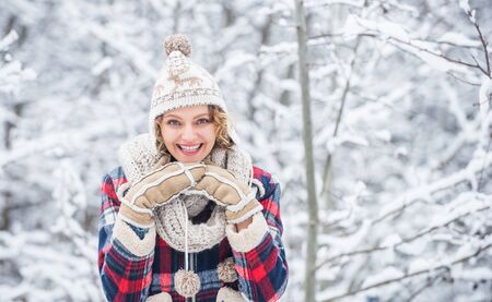 Dreams come true. full of energy. winter holiday and vacation. best place to feel freedom. woman enjoy winter landscape. girl relax in snowy forest. female casual style. my favorite season