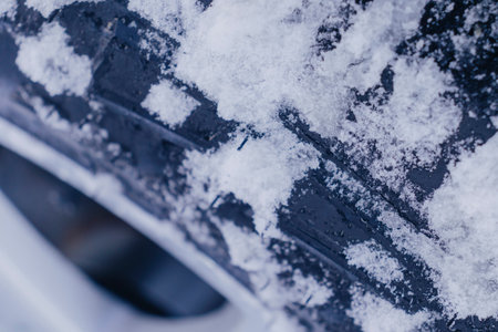 Car s winter tires in a morning closeup