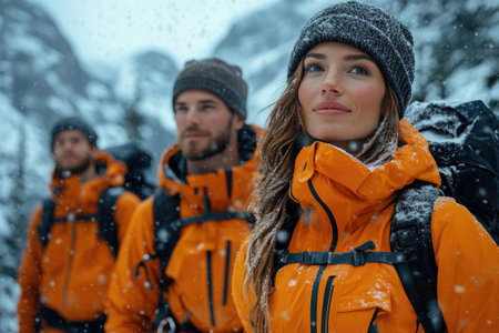 Snowy Exploration: Adventurers trek on snowy trails, embracing the beauty of a winter wonderland.