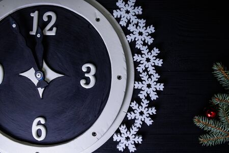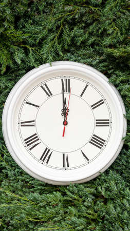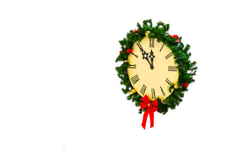 New Year's clock decorated with green branches on an isolated background predate the coming of the new year.