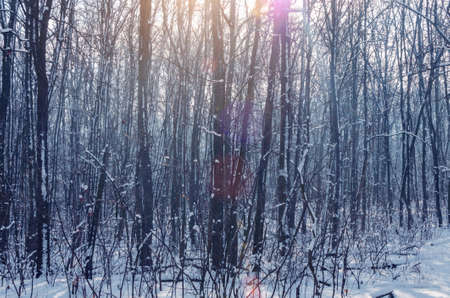 Sunlight in the winter forest. Beautiful winter landscape with sunbeams