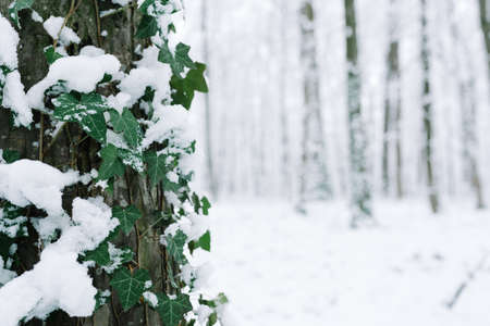 Scenic snow-covered forest in winter season. Good for Christmas background.