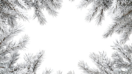 This image features a beautiful frame created by snowy pine branches surrounding an empty center space. Ideal for winter-themed designs, greeting cards, or seasonal promotions.