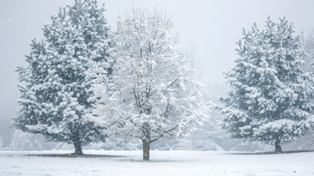 Majestic Winter Wonderland Featuring Snow-Covered Conifer Trees in a Serene Snowfall Landscape