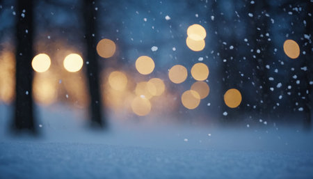 Winter night bokeh scene with soft golden lights, ideal for festive holiday celebrations.