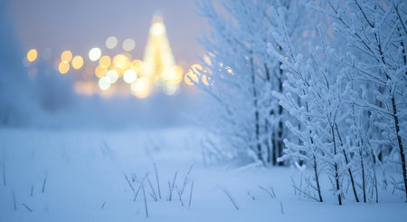 Soft outoffocus lights le amidst a sea of crisp white snow resembling the ling buds of frostkissed flowers on a chilly winter day.
