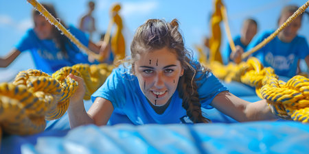 Dynamic Charity Obstacle Course Challenge with Participants Helping. Concept Charity Event, Obstacle Course, Teamwork, Fundraising, Community Involvement