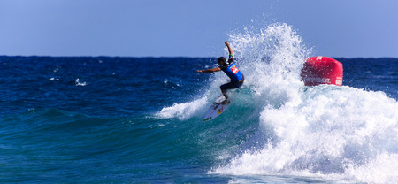 SNAPPER ROCKS, GOLD COAST, AUSTRALIA - 5 MARCH Unidentified Surfer races the Quiksilver Roxy Pro World Title Event 9 March 2014, Snapper Rocks, Gold Coast, Australia