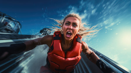 A woman conquers her fear with an exhilarating bungee jump She embraces the freefall, adrenaline rushing through her veins as she soars towards the earth This thrilling moment captures the ultimate adventure, where extreme sports meet breathtaking scenery AI Generative