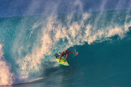 Wave rider's essence: portrait of a woman surfing - depicting the beauty and determination of a woman immersed in the exhilarating world of surfing, embracing the thrill of the sea and her own strength