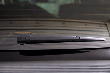 Wiper on car rear window, closeup