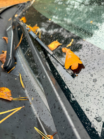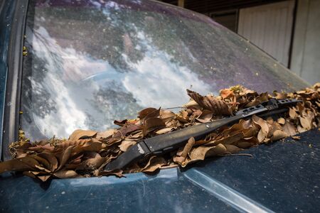 Wipers of old car and lots of leaves.