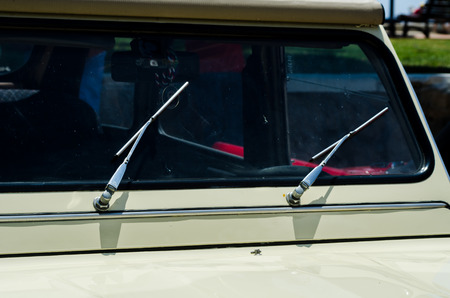 Close up shot of vintage car windscreen wipers.