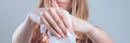 Cleaning hands with wet wipes, prevention of infectious diseases, corona virus covid-19