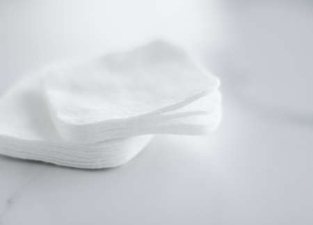Cosmetology, cleanliness and branding concept - Organic cotton pads on marble background, cosmetics and make-up remover, hygiene and skincare beauty brand product for healthcare and medical design