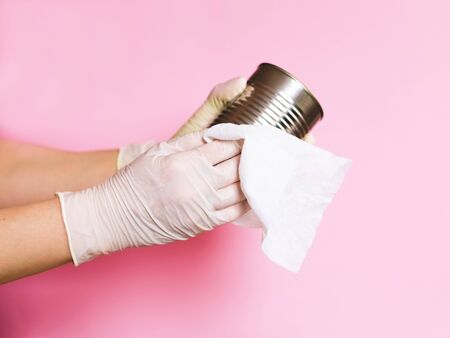 Food home delivery. Disinfecting after receiving products home.