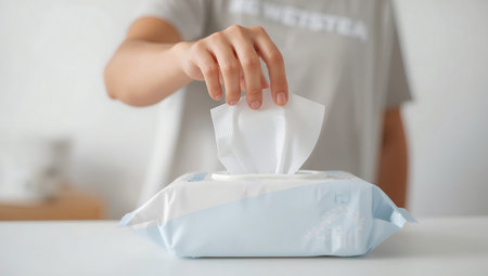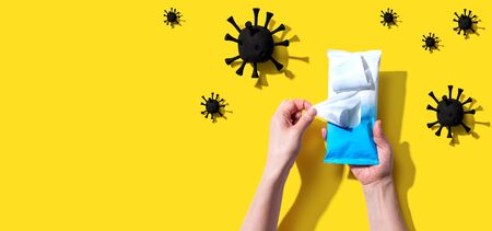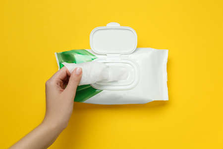 Woman taking wet wipes from the packaging - hygiene and health prevention